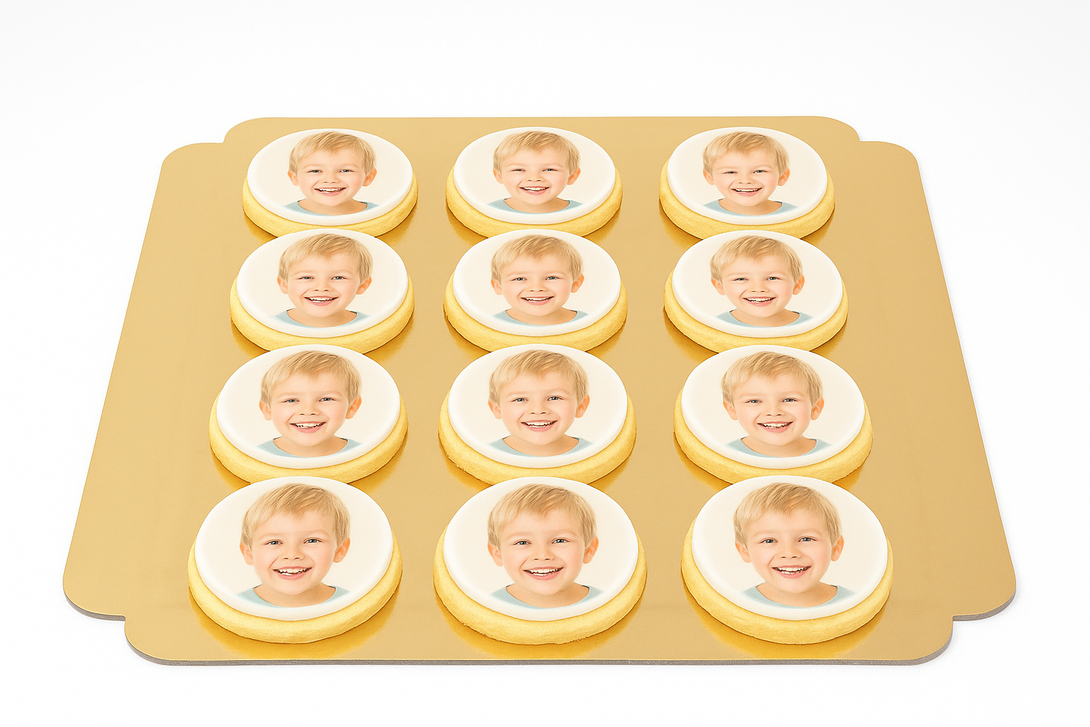 Größe der einzelnen Kekse: ca. 6,5 cm Durchmesser. Der kleine, feine, Keks in rund mit einem Foto darauf sind das perfekte, vielseitige Geschenk für jeden Anlass! Wir haben natürlich viele weitere Kekse in verschiedenen Formen und Motiven. Du findest sie HIER. Ob zu Weihnachten, zum Geburtstag, zu Ostern oder zur Taufe: Diese Kekse in rund kannst du zu jedem Anlass verschenken, weil du alles auf sie drucken lassen kannst, was dir gefällt! Ob Portrait, Landschaftsfoto oder sogar eine Zeichnung - da sind dir absolut keine Grenzen gesetzt! Du kannst sie auch noch weiter individualisieren, indem du zum Beispiel eine Beschriftung hinzufügst. Wie wäre es mit einer kleinen, netten Botschaft auf jedem Keks in rund? Das wird garantiert ein Lächeln auf die Lippen des Beschenkten zaubern. Die Kekse in rund sind eine hübsche Augenweiden sie sehen aber nicht nur gut aus, sondern sie schmecken auch wunderbar! Sie werden extra frisch für dich aus einem äußerst schmackhaften Teig mit Vanille- und Mandelgeschmack gebacken und mit einem süßen Aufleger aus Fondant mit dem von dir gewählten Foto verziert. Du kannst da wirklich alles auf deine Kekse drucken lassen, es ist nur wichtig, dass das Bild für einen Keks in rund geeignet ist, egal ob ein Foto aus dem Urlaub, mit deinem Schatz, von deinem Kind oder vielleicht auch ein Landschaftbild oder eine kleine Malerei. Vielleicht auch ein Bild, was dein Kind mal gemalt hat? Oder wie wäre es mit einem feinen Gemälde? Probiere es doch aus und lasse deiner Kreativität freien Lauf! So wird jede Packung Kekse einzigartig. Wir verpacken jeden einzelnen Keks für dich so, dass auf keinen Fall etwas zu Bruch gehen könnte. So kannst du dich ganz stressfrei und entspannt auf dein nächstes Event vorbereiten, egal ob es sich um einen kleinen Familienabend, eine große Feier oder eine riesige Party mit all deinen Freunden handelt, während wir uns um deine leckeren, schönen Kekse kümmern. Wir schicken sie dir dann ganz einfach an deinem Wunschtermin zu dir nach Hause oder einer Adresse deiner Wahl. Also, worauf wartest du da noch? Bestelle sie jetzt hier!