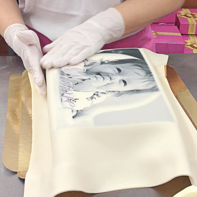 Rechteckiger Tortenaufleger aus Mandeldekormasse
