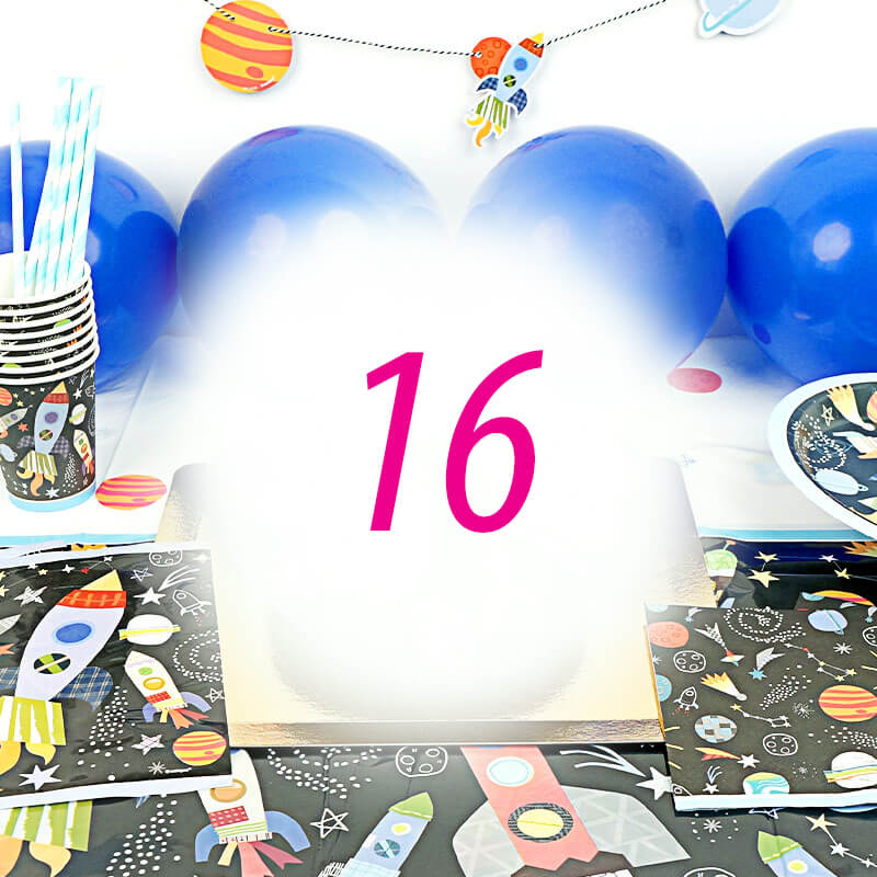 Folgendes ist in unserem Weltraum Partyset für 16 Personen enthalten:
